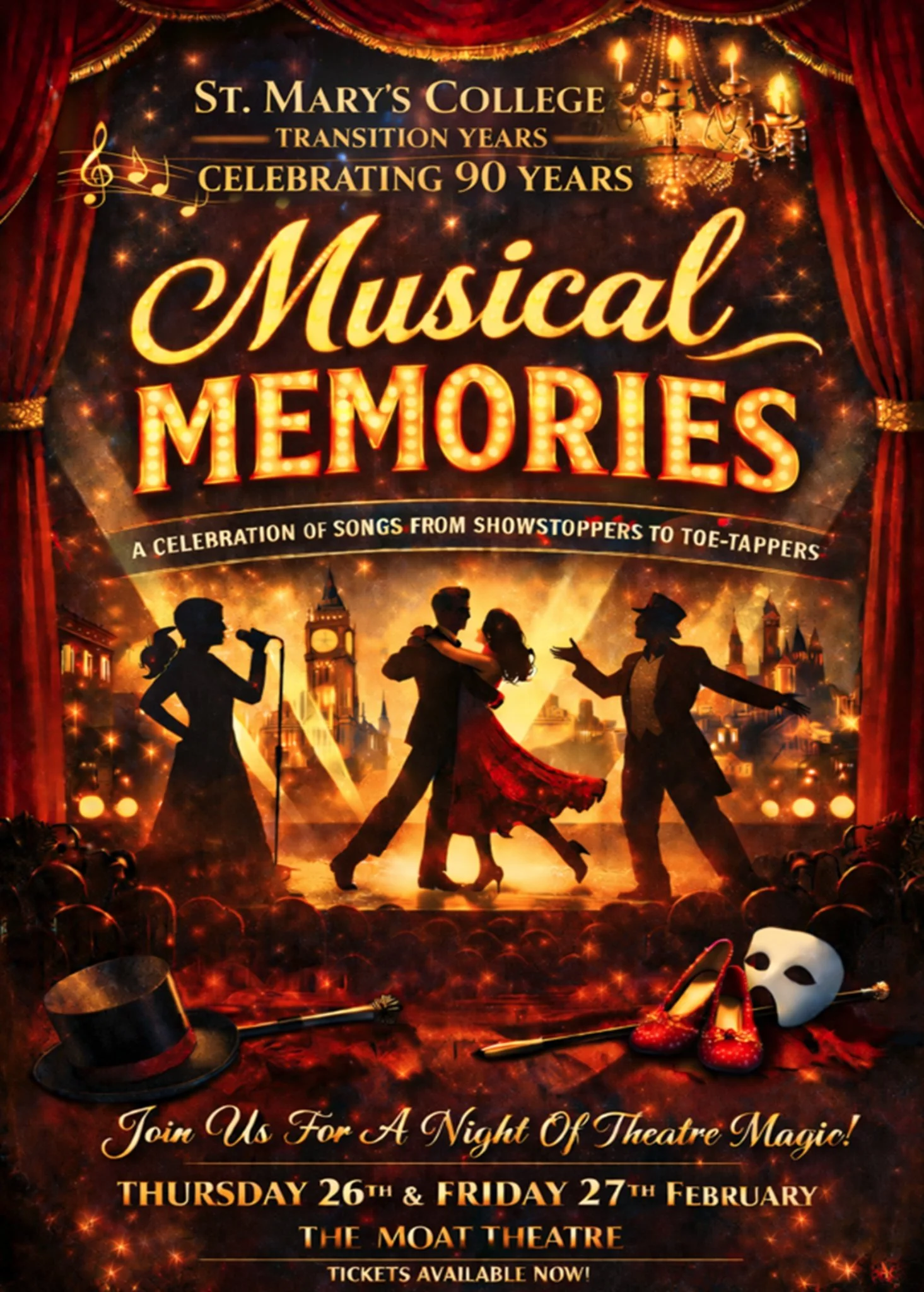 Join the Transition Year Students of St Mary's College for Musical Memories, part of the 90th Anniversary Celebrations of the founding of the school. This show is a walk down memory-lane of the musicals performed in the rich musical history the students of St Mary's have presented through the decades.